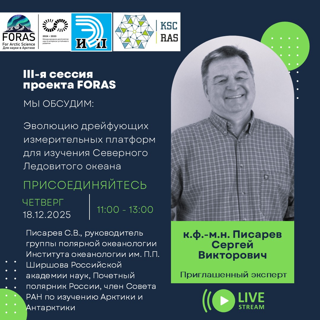 18 декабря в 11 часов состоится третья онлайн-сессия проекта "Из Арктики для Арктики: научная дипломатия для устойчивого будущего региона и его жителей – FORAS", выполняемого в рамках Международного десятилетия наук в интересах устойчивого развития под эгидой ЮНЕСКО.