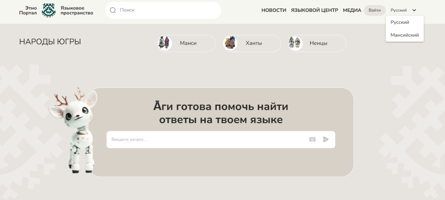 Этнопортал - платформа, посвященная сохранению и популяризации культурного наследия коренных народов Севера, проживающих на территории ХМАО. Сейчас все материалы портала дублируются на русском и мансийском.